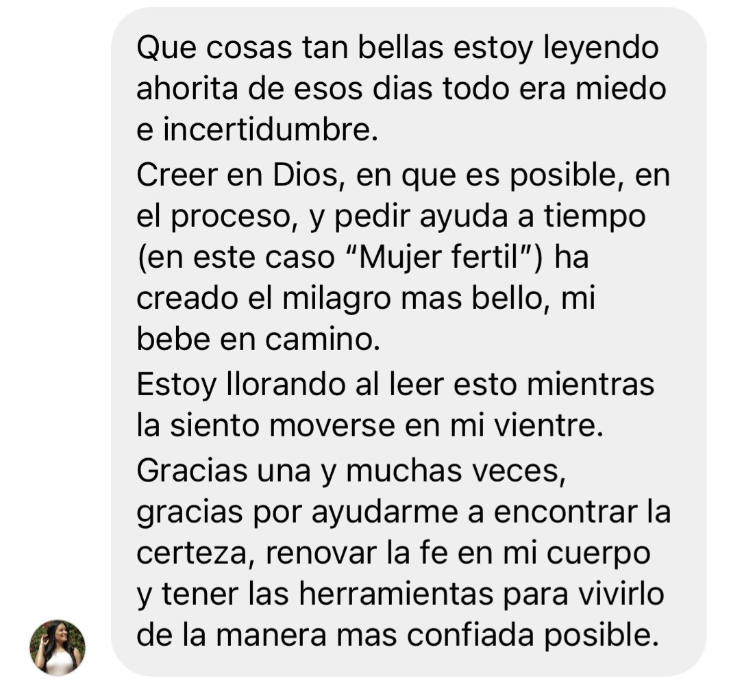 Todos esos años de búsqueda, mucho estudio y años acompañando a mujeres a quedar embarazadas, pude comprender todo lo que necesita nuestro cuerpo de mujer para lograr un embarazo.